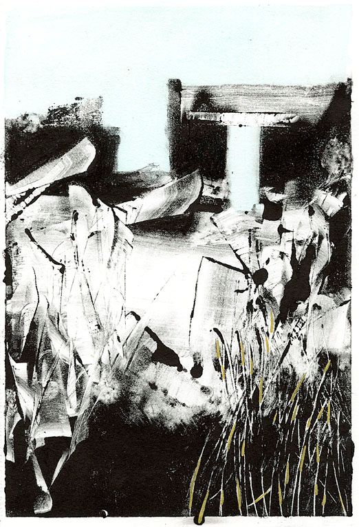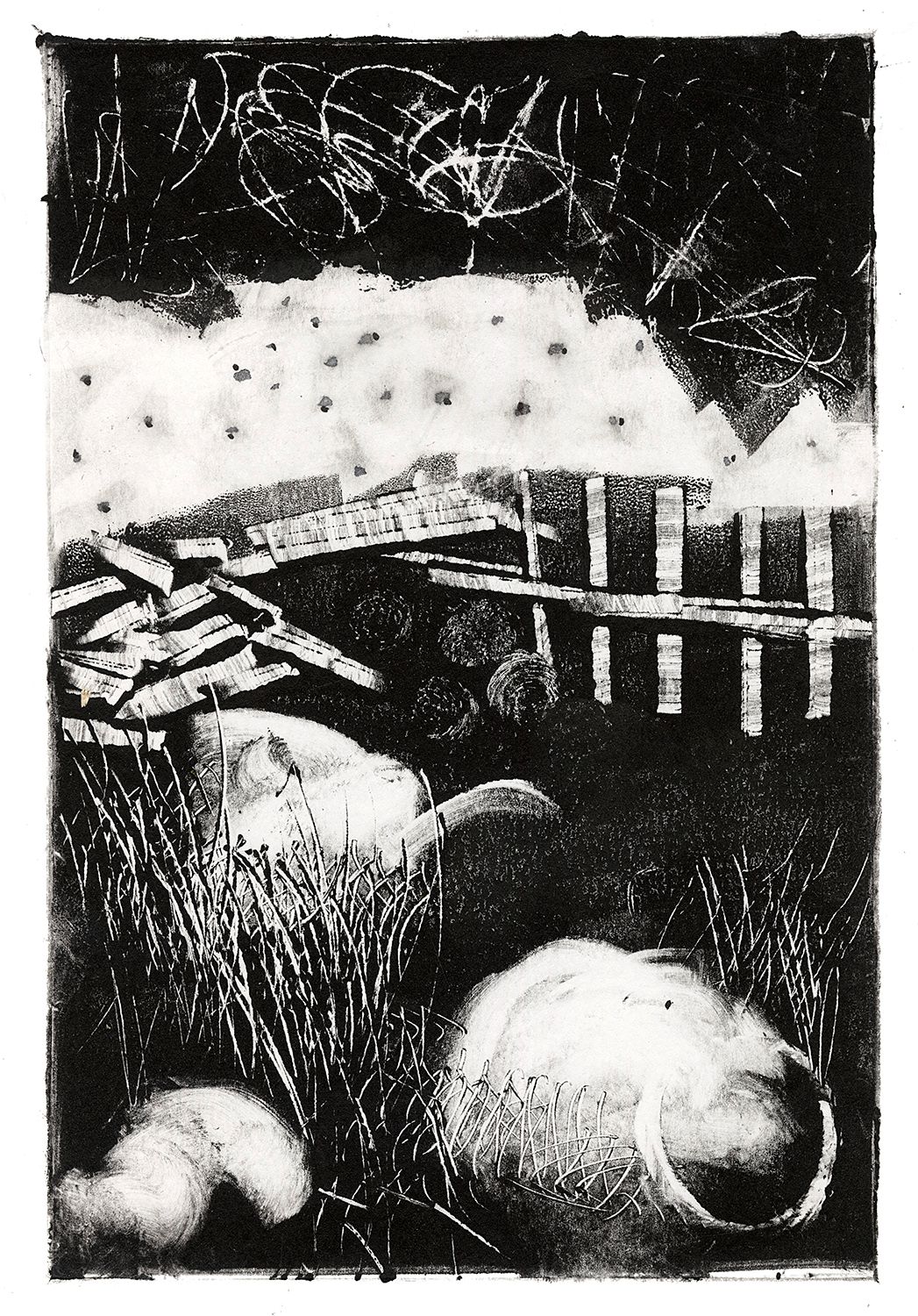#4 Terrain with fence / 16 x 20 / intaglio on paper